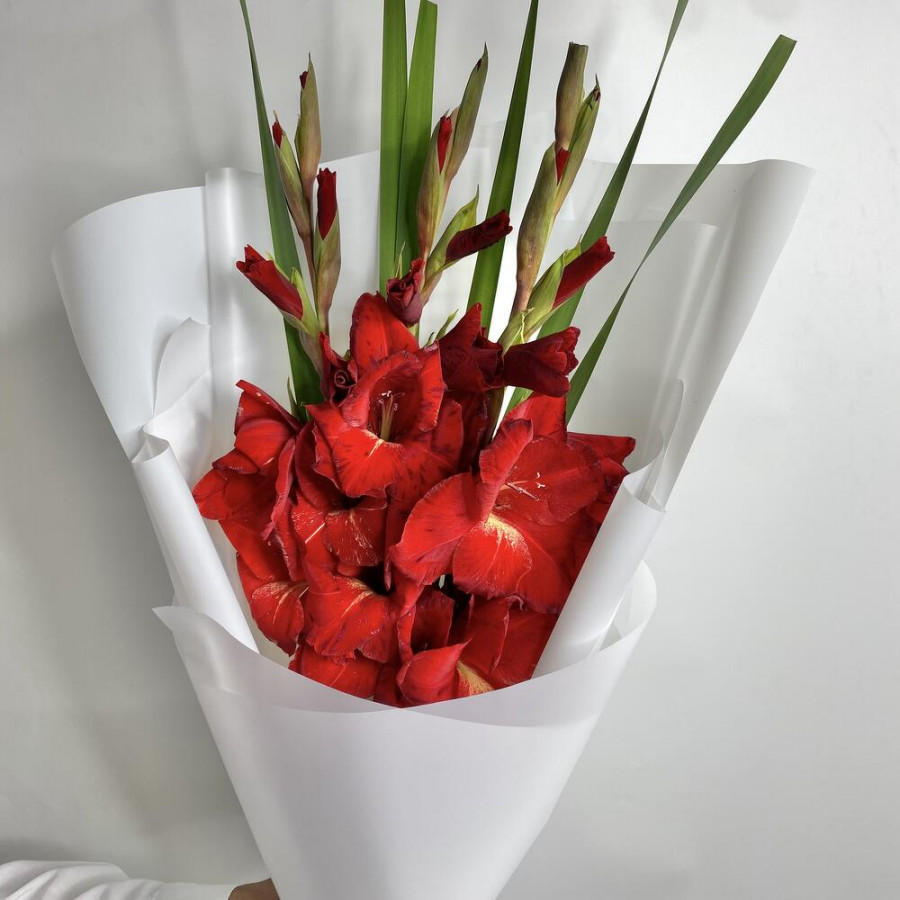Букет 9 красных гладиолусов