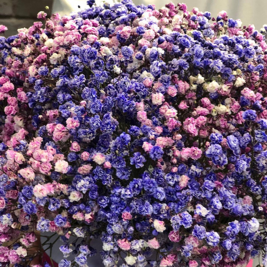 На фото гипсофила фиолетовая в коробке. В составе: гипсофила 7 шт, шляпная коробка (s) 1 шт, атласная лента 1 шт, . Все цветы свежие и ароматные, букет красиво оформлен и отлично подходит для подарка. Доступна доставка цветов или самовывоз.